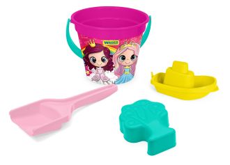Набір доступний у двох кольорових варіантах і включає: лопату, формочку для піску, кораблик та відро 3,4 л.