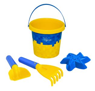 До набору входять: відеречко 1 л, лопатка, граблі, формочка для піску.