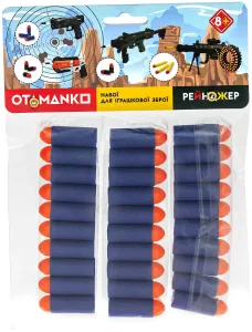 Патрони (стріли) OTAMANKO призначені для використання з іграшковою зброєю Рейнджер від бренду OTAMANKO. Можна використовувати як заміну загублених або поповнити свої боєприпаси. Патрони виготовлені з EVA матеріалу (спіненого полімеру, який унеможливлює появу синців і подряпин у разі випадкового влучання в гравця). Закруглені, прогумовані наконечники додатково амортизують удар. Однак, для захисту очей рекомендується використовувати окуляри (не входять до комплекту). Гільзи виготовлені з пластику.