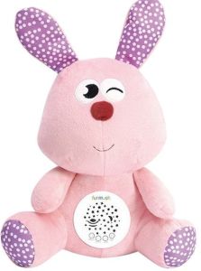 М′яка музична іграшка з проектором Кролик від ТМ Funmuch має світлові та звукові ефекти: відтворює 20 приємних мелодій і проекцію нічного зоряного неба змінюючи 5 кольорів світла. Працює безперервно протягом 20 хвилин.