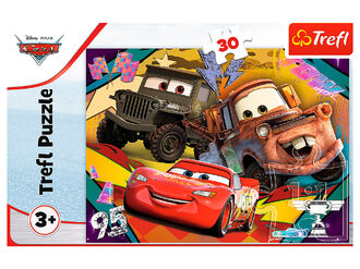 Опис: Цей захоплюючий пазл з 30 елементів створений для маленьких шанувальників анімаційного фільму "Автомобілі" від Діснея.